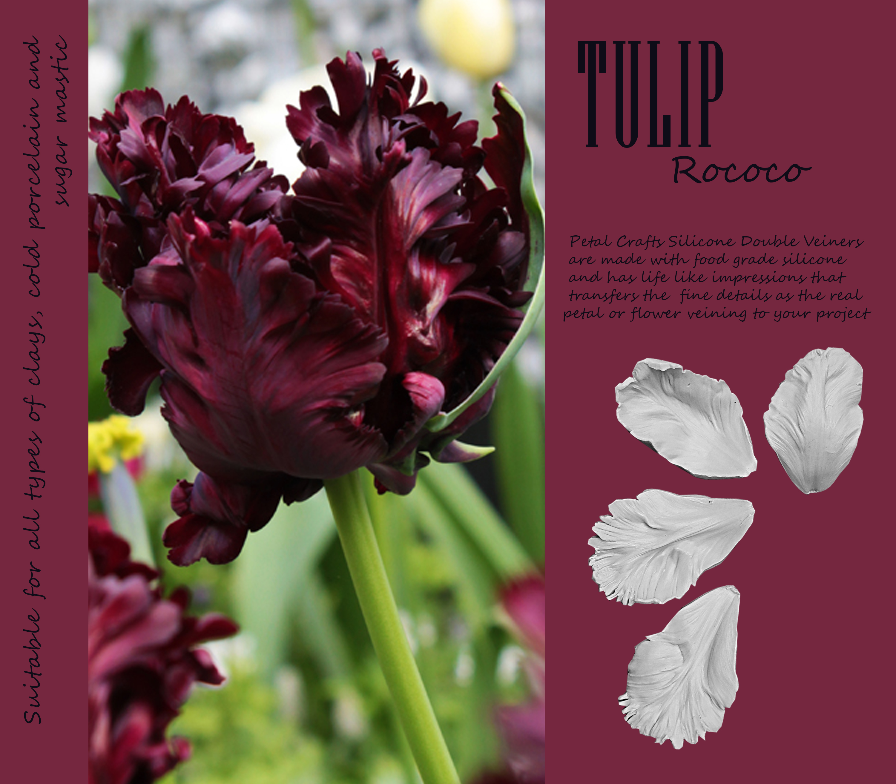 Tulip Rococo Double Veiner Real Petal Leaf Flower Silicone Mold Mould Cutter Artificial for Gumspate Clay Flower Fondant Mastic