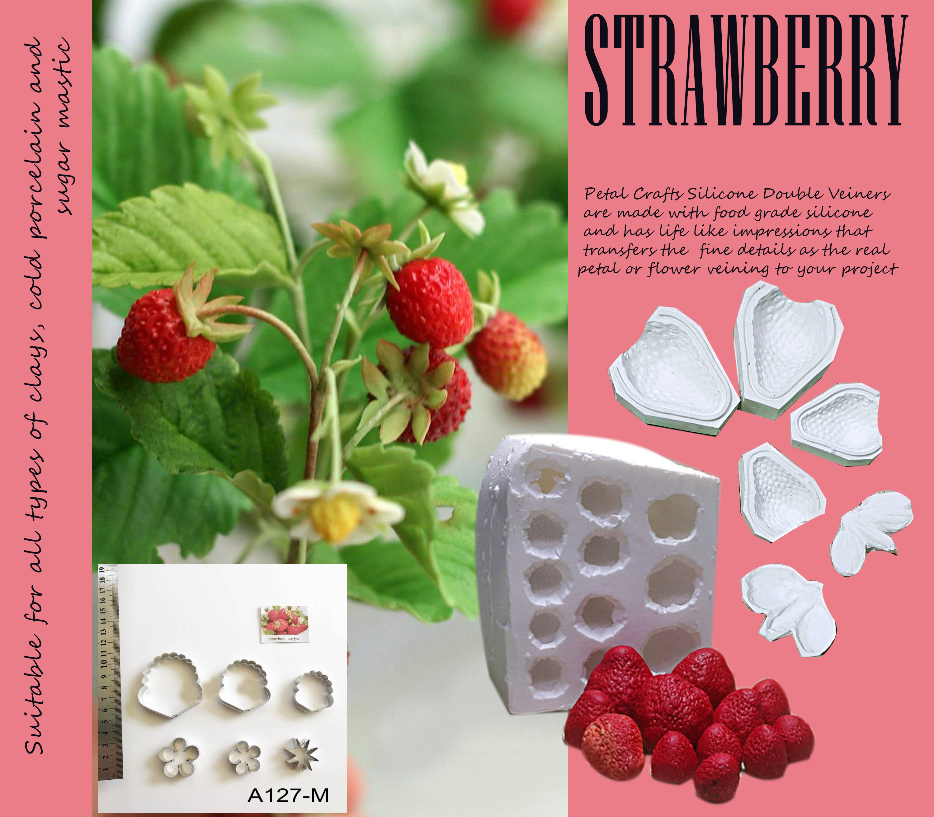 Strawberry- Double Veiner Real Petal Leaf Flower Silicone Mould Mold Cutter Artificial Botanical for Gumspate Clay Flower Fondant Mastic