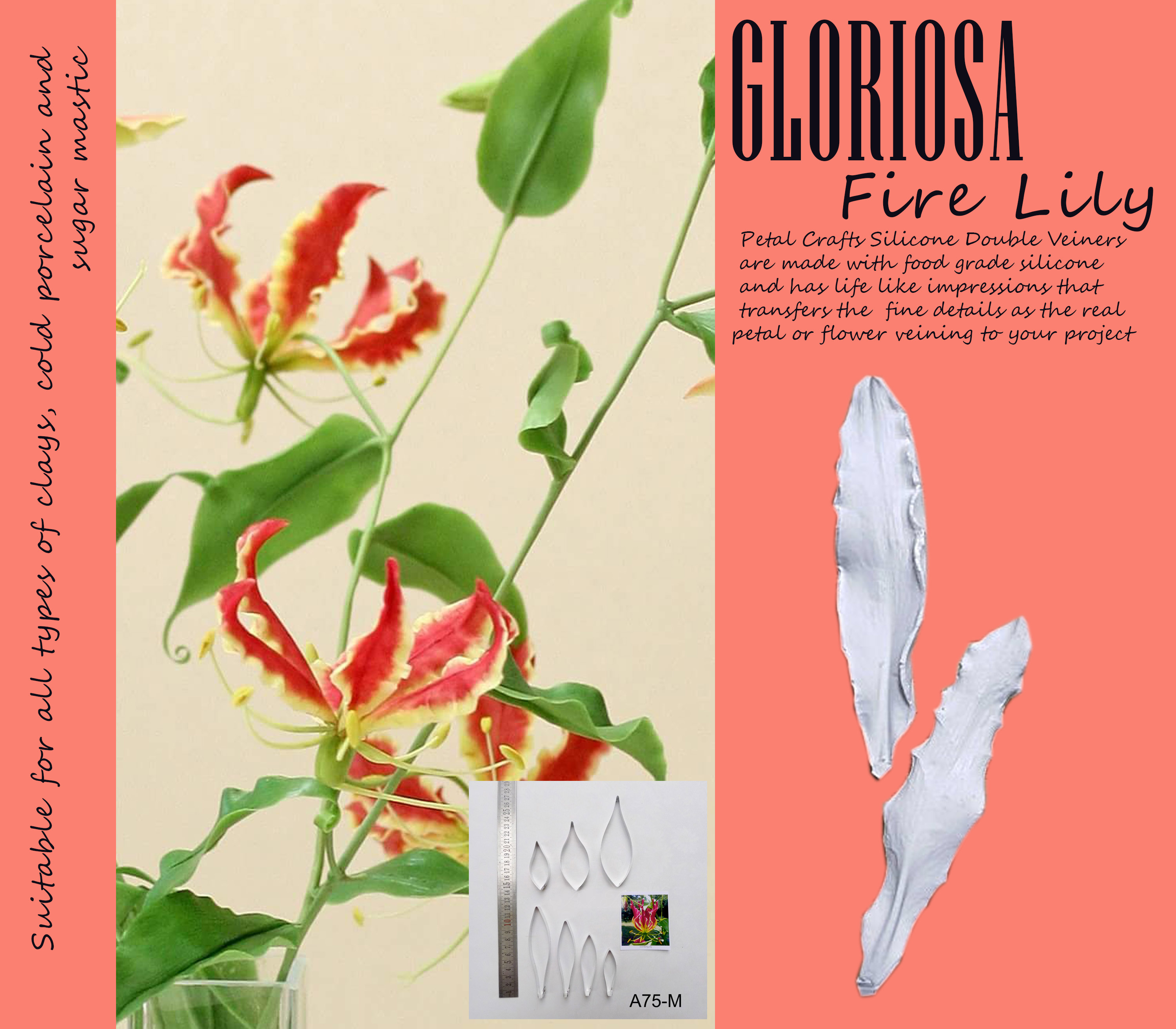 Gloriosa - Double Veiner Real Petal Leaf Flower Silicone Mould Mold Cutter Artificial Botanical for Gumspate Clay Flower Fondant Mastic