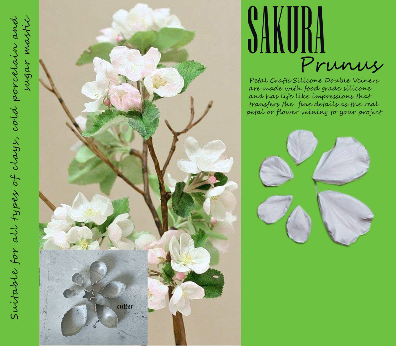 Sakura Blossom - Double Veiner Real Petal Leaf Flower Silicone Mould Mold Cutter Artificial Botanical for Gumspate Clay Flower Fondant Mastic