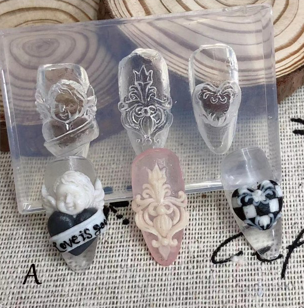 Retro Angel 3D Clear Silicone Mold Mould Acrylic Powder Sculpture Nail Stamping Carving Nail Art Template Manicure