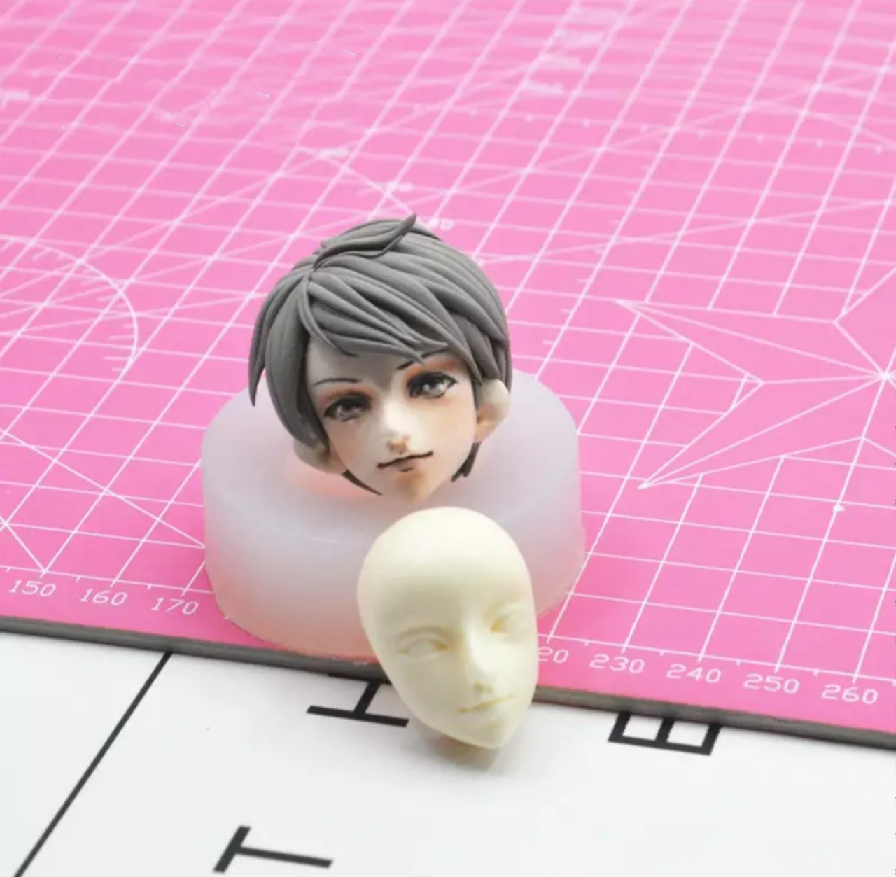Small Male Doll Chibi Anime Face Silicone Cake Fondant Chocolate Gum Paste Mold Cake Decorating Polymer Clay Resin Sugar Candy Mold