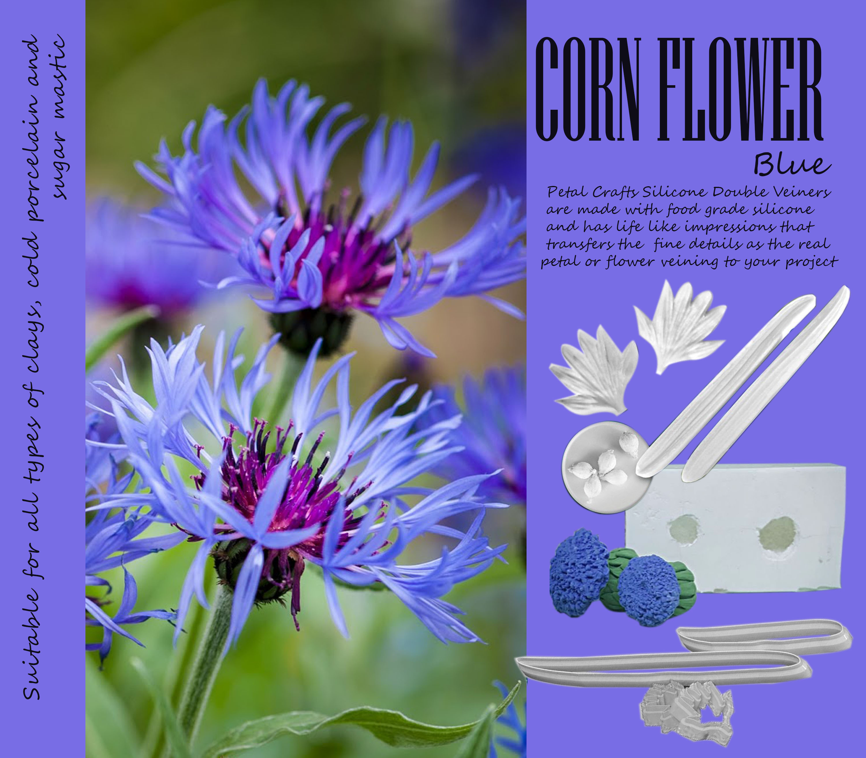 Corn Flower - Double Veiner Real Petal Leaf Flower Silicone Mould Mold Cutter Artificial Botanical for Gumspate Clay Flower Fondant Mastic