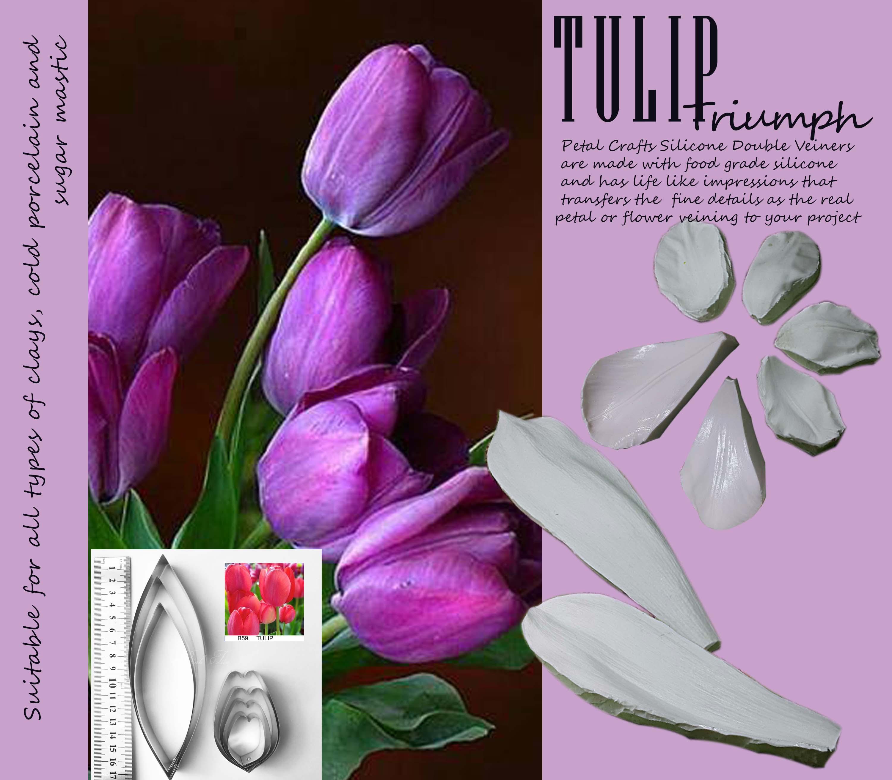 Tulip Triumph - Double Veiner Real Petal Leaf Flower Silicone Mould Mold Cutter Artificial Botanical for Gumspate Clay Flower Fondant Mastic