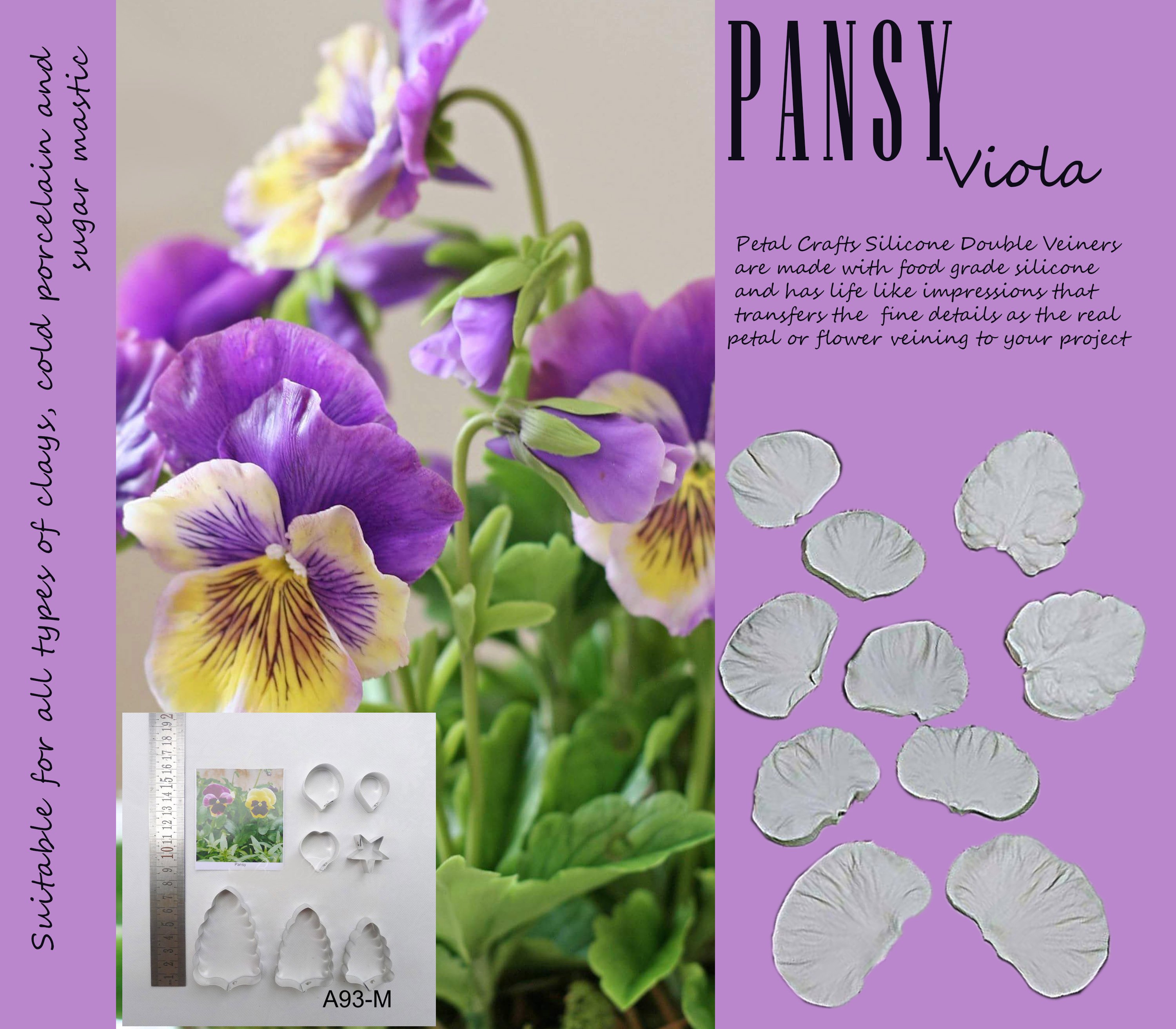 Pansy Viola - Double Veiner Real Petal Leaf Flower Silicone Mould Mold Cutter Artificial Botanical for Gumspate Clay Flower Fondant Mastic