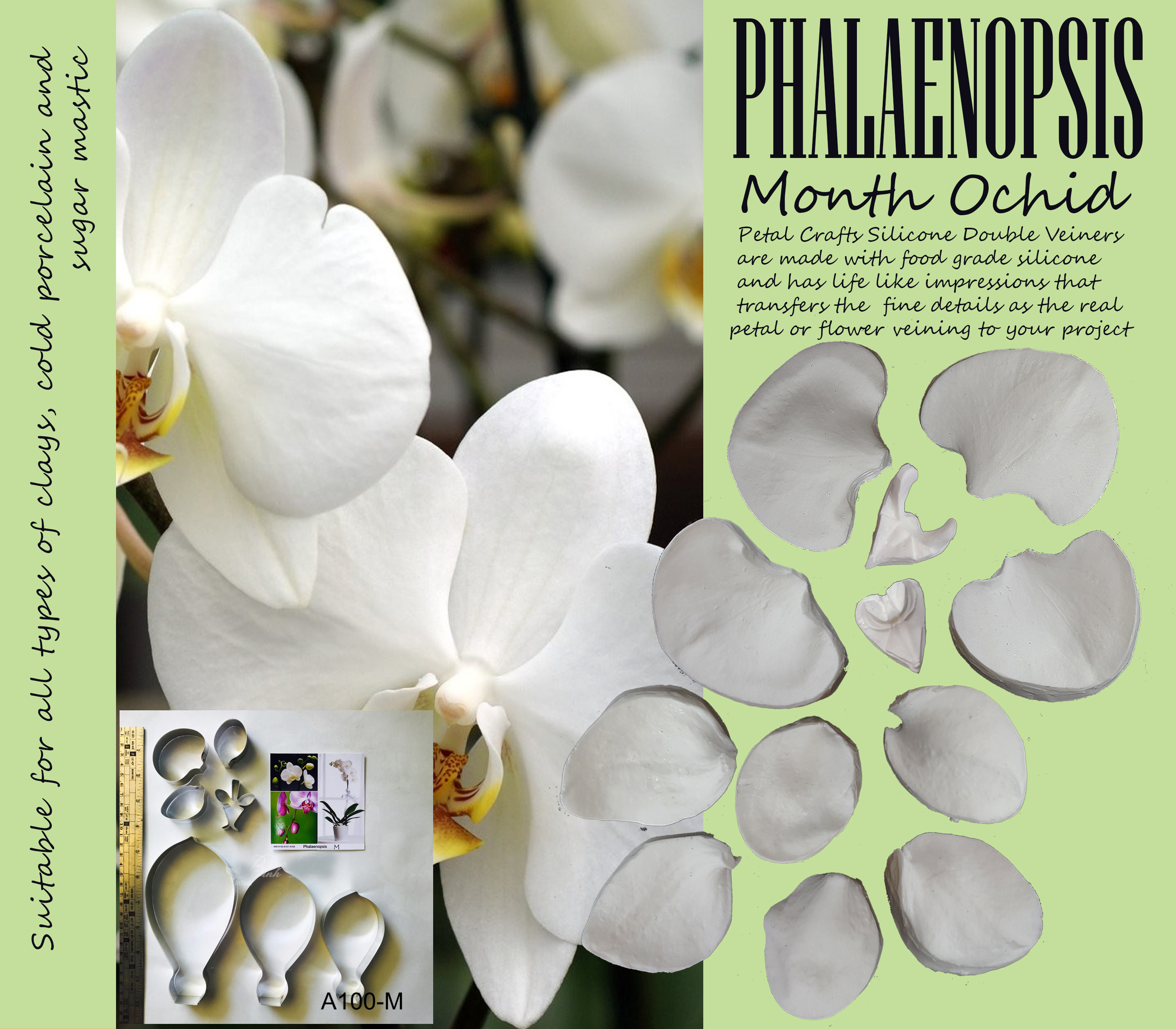 Month Ochid - Double Veiner Real Petal Leaf Flower Silicone Mould Mold Cutter Artificial Botanical for Gumspate Clay Flower Fondant Mastic