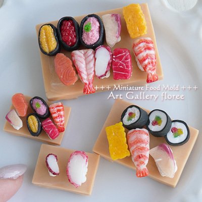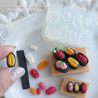 3D Sushi Nigiri Dollhouse Miniature Clay Resin Jewelry Nail Decor Clay Japan Craft Clear Silicone 1/12 Scale