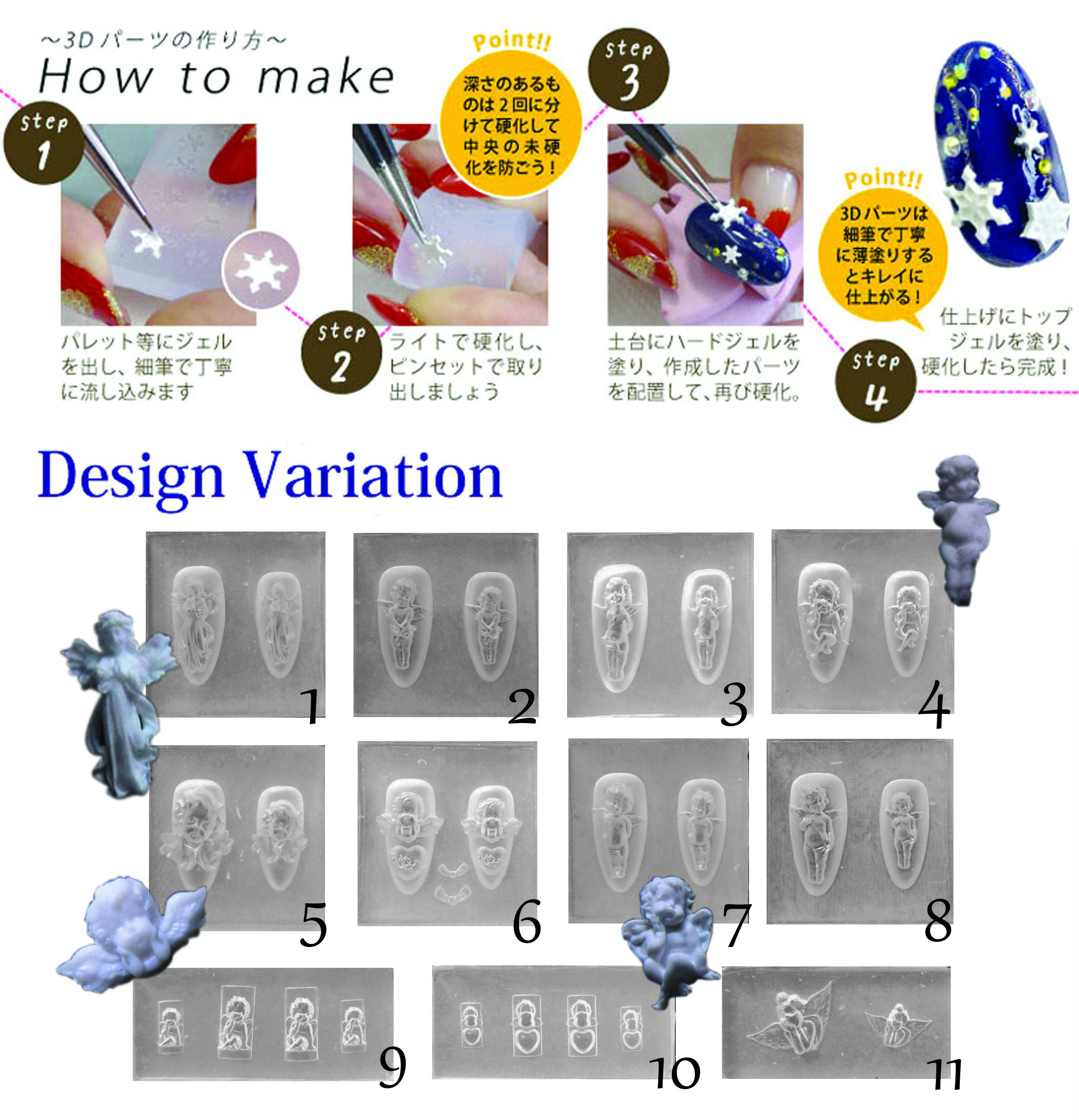 Angel 3D Clear Silicone Mold Mould Acrylic Powder Sculpture Nail Stamping Carving Nail Art Template Manicure